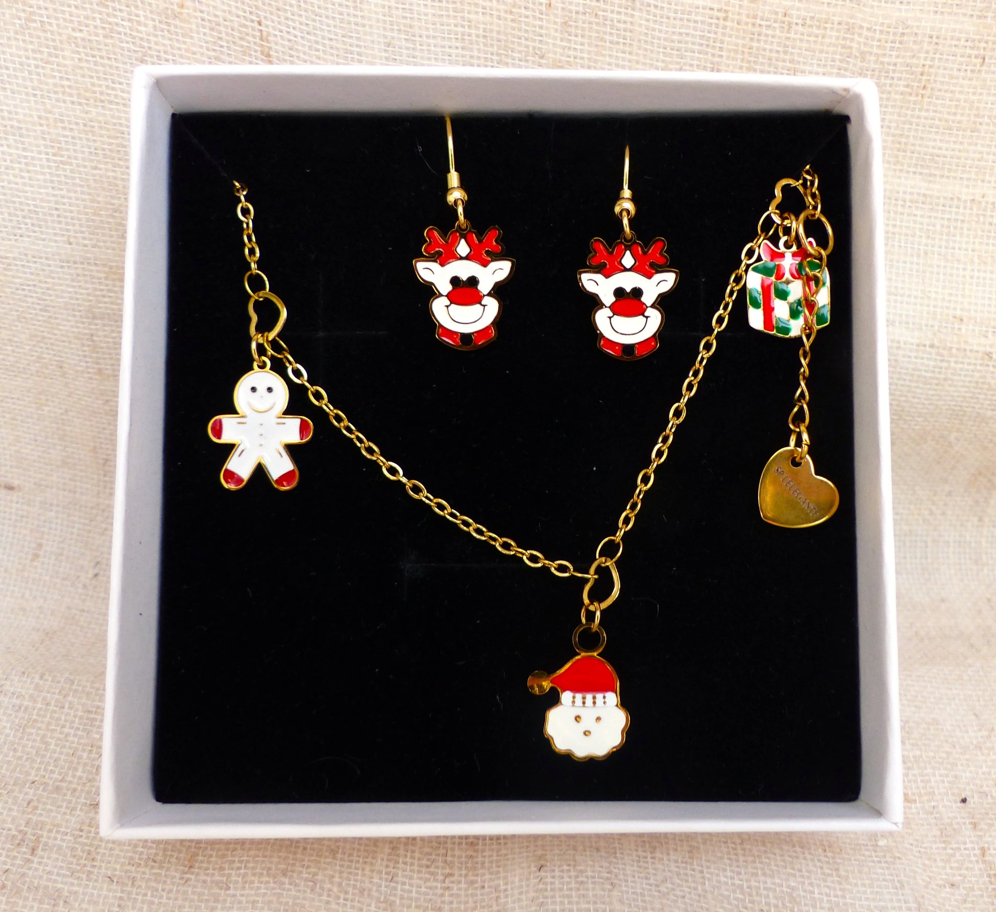 La parure correspond exactement au collier et aux boucles d'oreilles de la première photo du coffret.